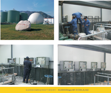 德青源的整套熱電肥聯沼氣工程設備每年能處理300萬只蛋雞產生的近8萬噸雞糞和近20萬噸沖洗雞糞、清洗雞蛋的污水等。發電組2.5MW,同時為周圍用戶提供清潔的新能源燃燒氣體。該項目種采用了4套來自德國的 ADOS biogas 401 監測CH4,O2,CO2,H2S.
